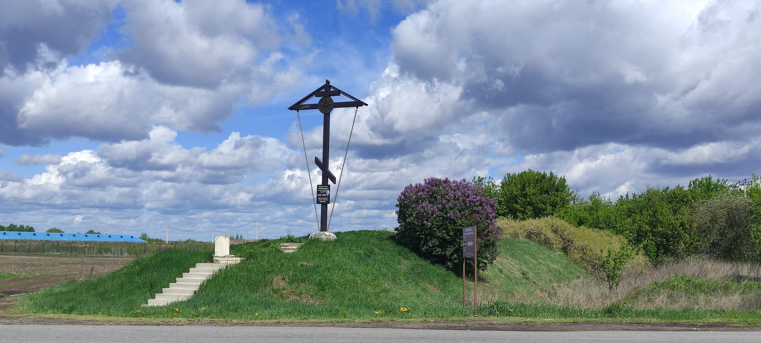 Финал маршрута: Памятник «Поклонный крест» и Каменный монумент с надписью «Белгородская защитная черта — памятник археологии государственного значения», координаты 52.041533, 39.777999